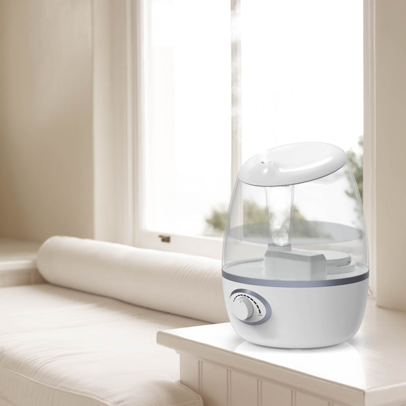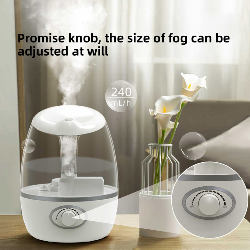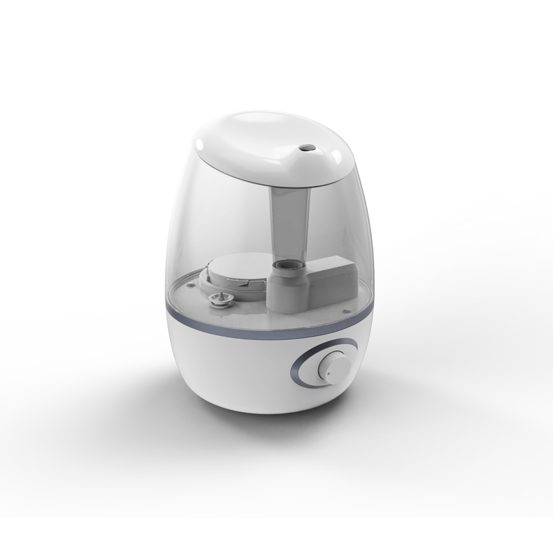 この加湿器は、超音波を利用して1秒間に170万回の高周波振動を発生させ、水のミストを1〜5ミクロンの超微粒子にし、空気圧装置を通じて空気中に拡散させます。