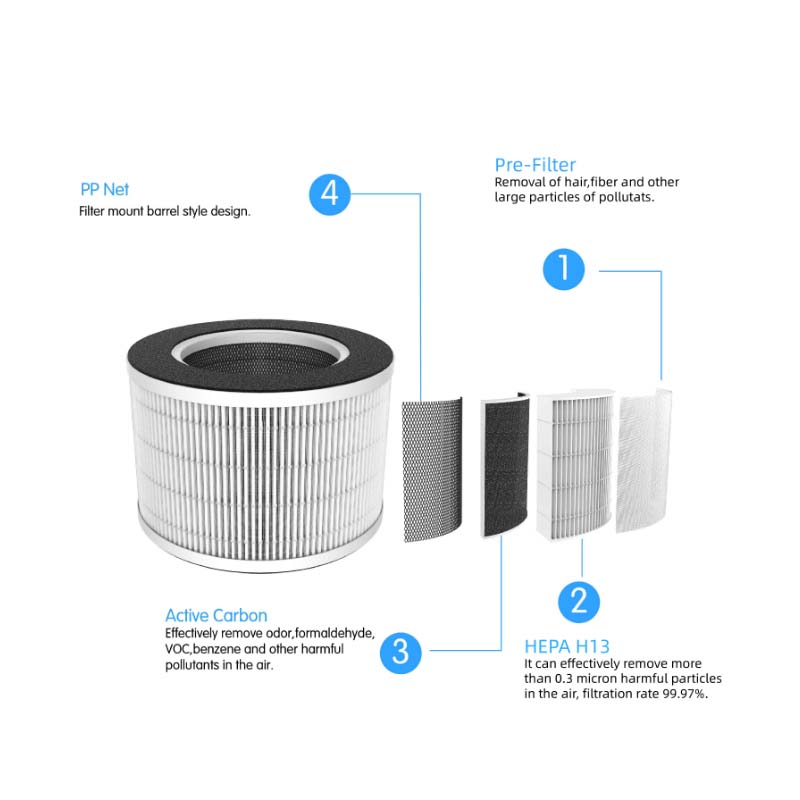 H13 99.97% HEPA グレードは、ほこり、煙、臭いを取り除き、空気の質を向上させます。