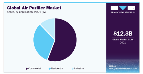 業界調査によると、空気清浄器2021 年に世界市場で 122 億 6000 万米ドルを超え、この値は 2022 年から 2030 年にかけて約 8.1% 増加すると予測されています。 の上昇中of都市部の汚染レベル。私さらに、意識 とともに、国民の健康意識を高めます。改善 生活水準の貢献 の改善に世界の空気清浄機市場規模.