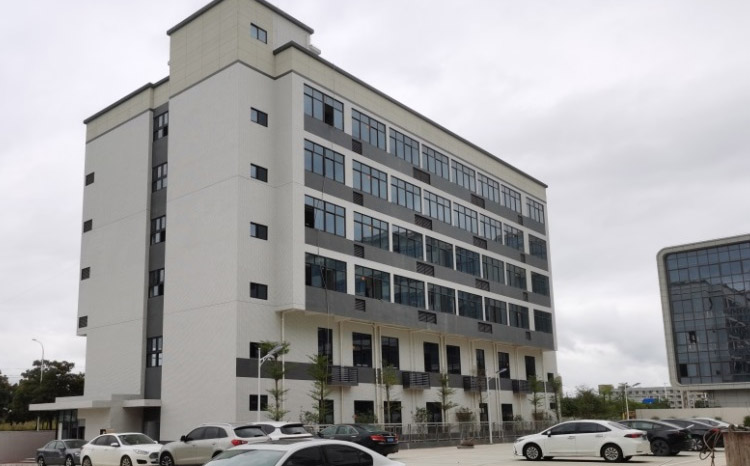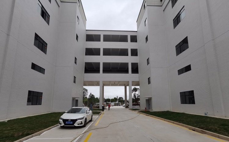今回の工場開発では宿泊施設も考慮しました。従業員は工場内に寮を利用することができます。写真にある建物には 500 名を超えるスタッフが収容可能です。