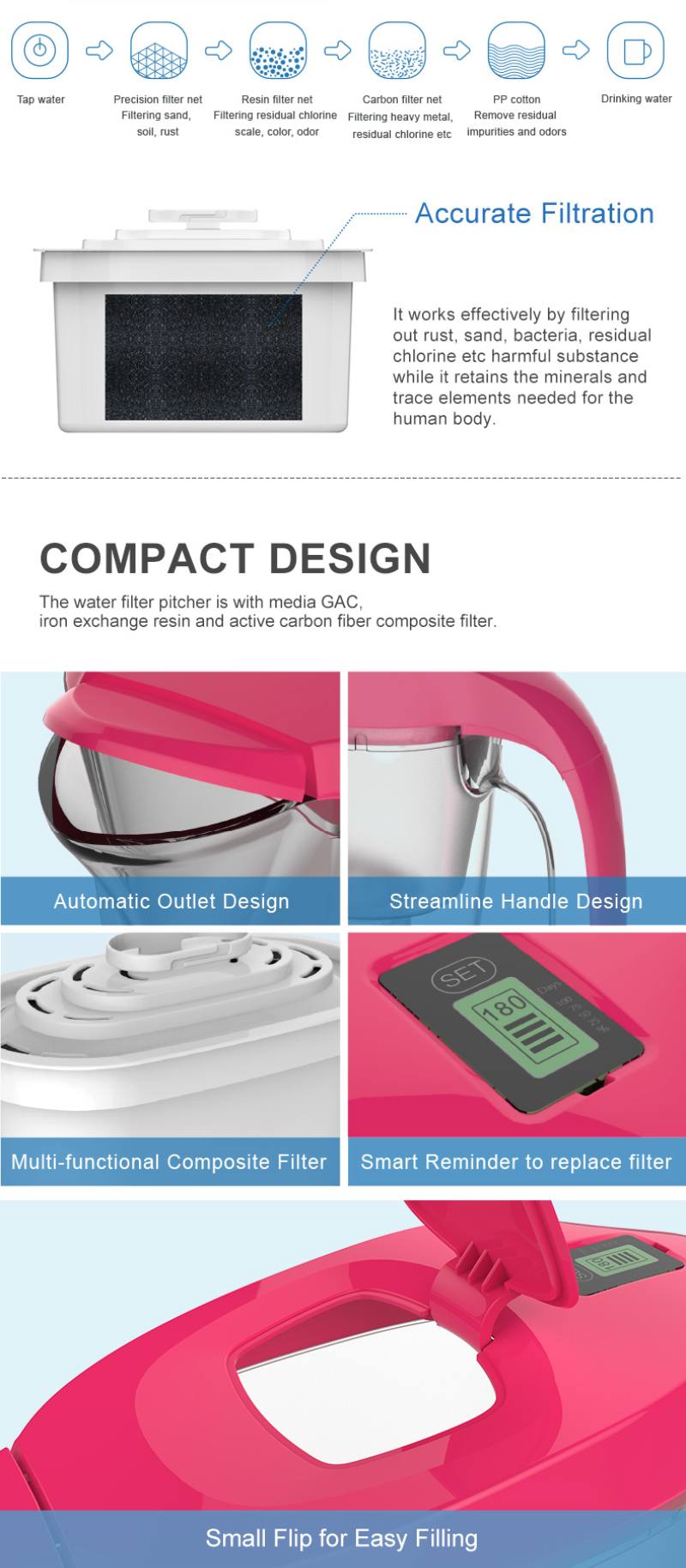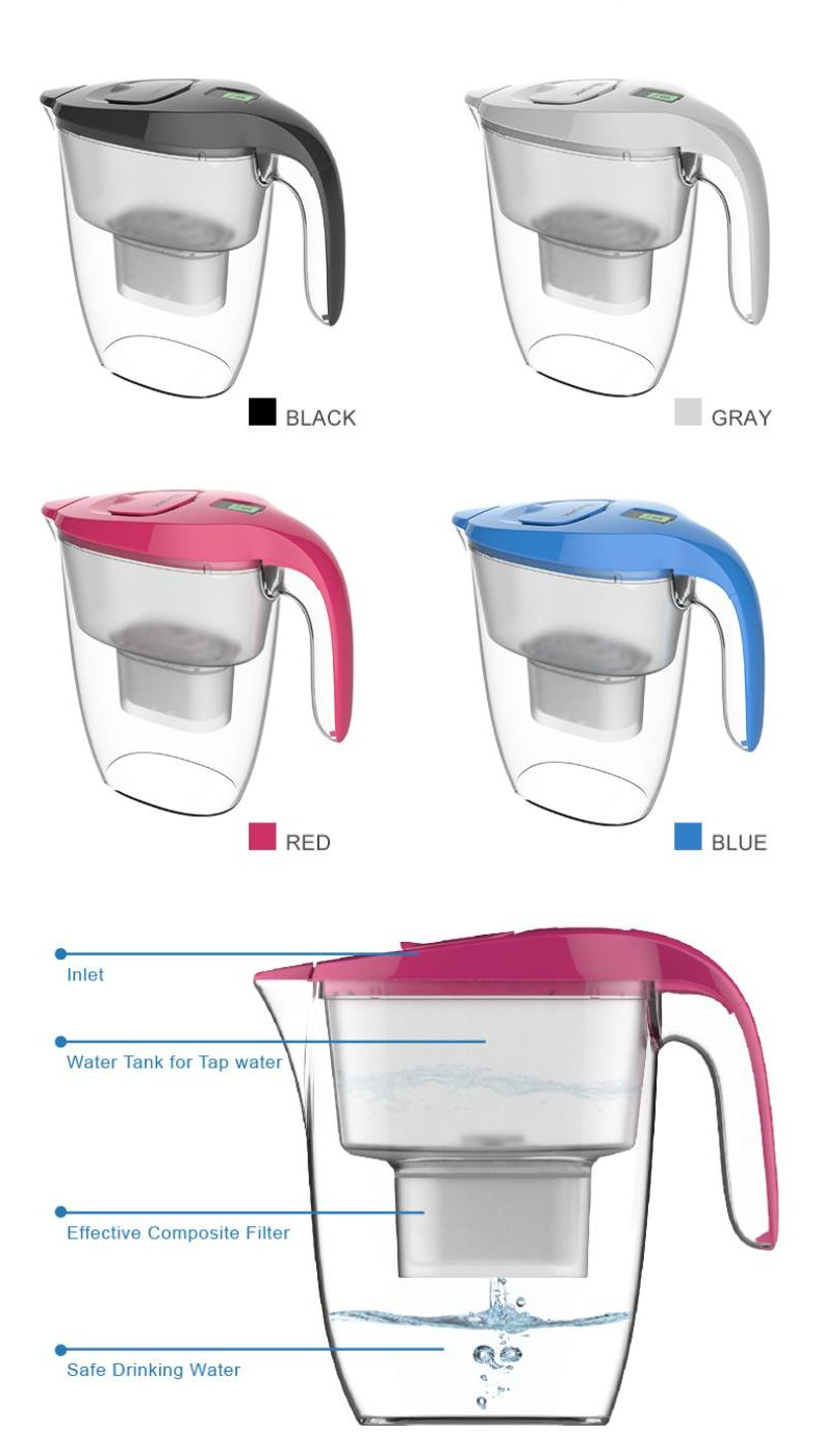 3、ポット本体は浄水器バレルと上部カバーに締まり嵌めされており、逆さまが緩まないようにし、水を注ぐときに上部カバーが落ちるのを防ぎます。
