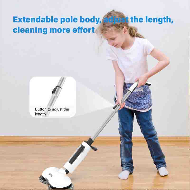 コードレス電動スピンモップは調節可能な機能を備えています。 ロッドの長さを調整できるため、自分にとって最も快適な長さを見つけることができます。